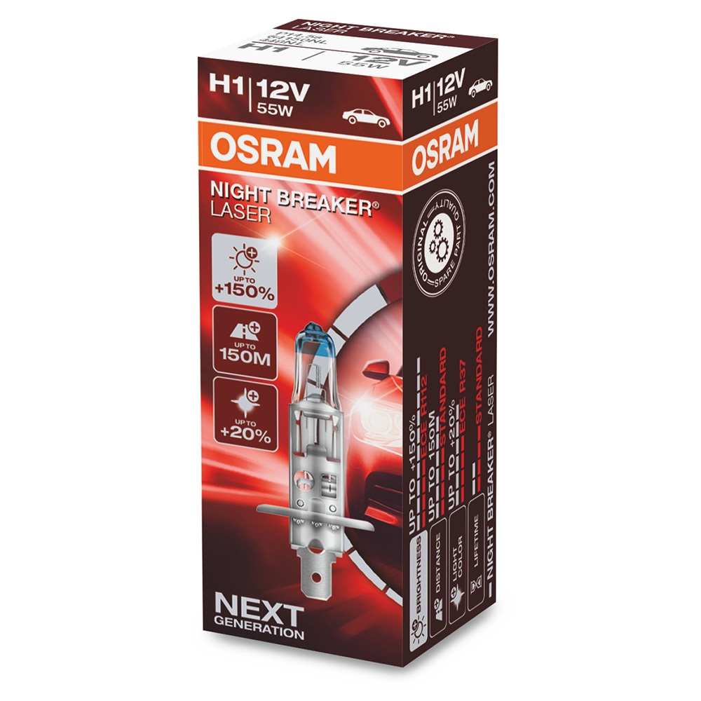Лампа галогенная 12V 55W H1 OSRAM NIGHT BREAKER LASER на 150% больше света на дороге
