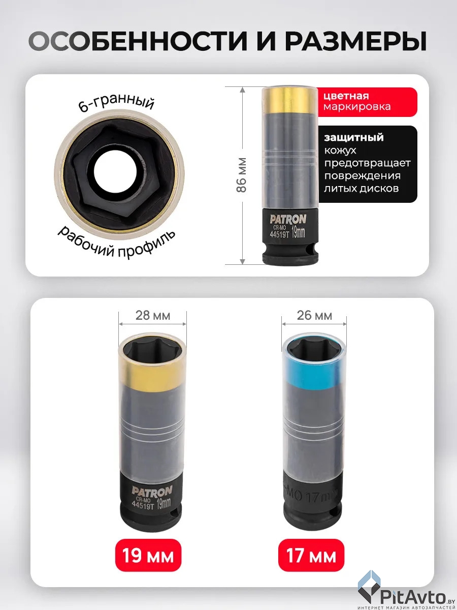 Набор головок ударных глубоких PATRON / P-4035D