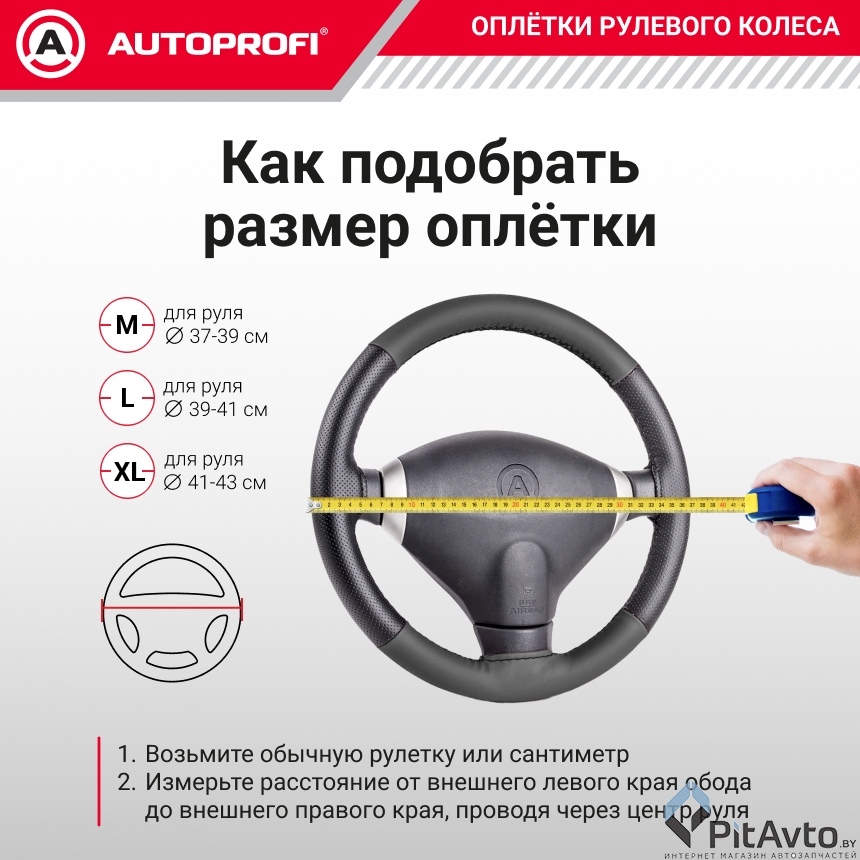 Оплётка руля из эко-кожи AUTOPROFI AP-1911 BK (M)