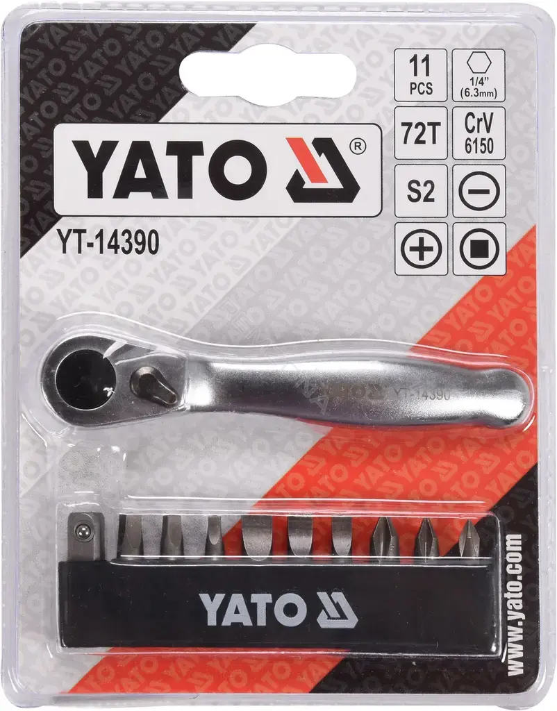 Набор бит-насадок с трещоткой YATO 1/4" 11пр